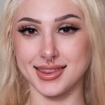 Physically, Skylar stands at 5’3″ (160 cm) tall and weighs 130 lbs (59 kg). She has an average body type with measurements of 38-25-35. Her bra size is 38F, which is equivalent to UK 38E, EU 85F, AU 16F, and JP 85F. Skylar has blonde hair and brown eyes, and her pubic hair is trimmed, forming a triangle or landing strip. She has several tattoos, including a sleeve on her right arm, a bull design on her left shoulder, designs on her lower left arm (above the wrist), fingers on both hands, the back of both thighs, and monarch butterflies on both legs above the knee. Additionally, she has piercings in her navel, septum, and both nipples. Her breasts are enhanced, which is a notable feature for many of her fans.
